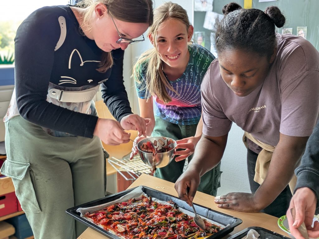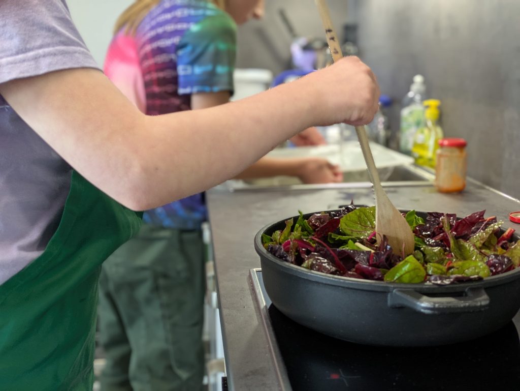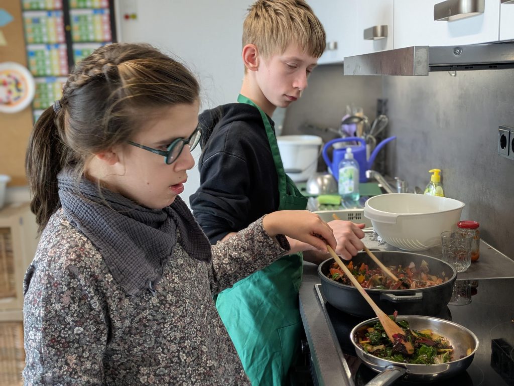 Nach dem Ernten ging es ab in die Küche: Gemeinsam haben wir das frische Gemüse zubereitet und dann zusammen gegessen. 😋 So schmeckt die Ernte gleich doppelt so gut!