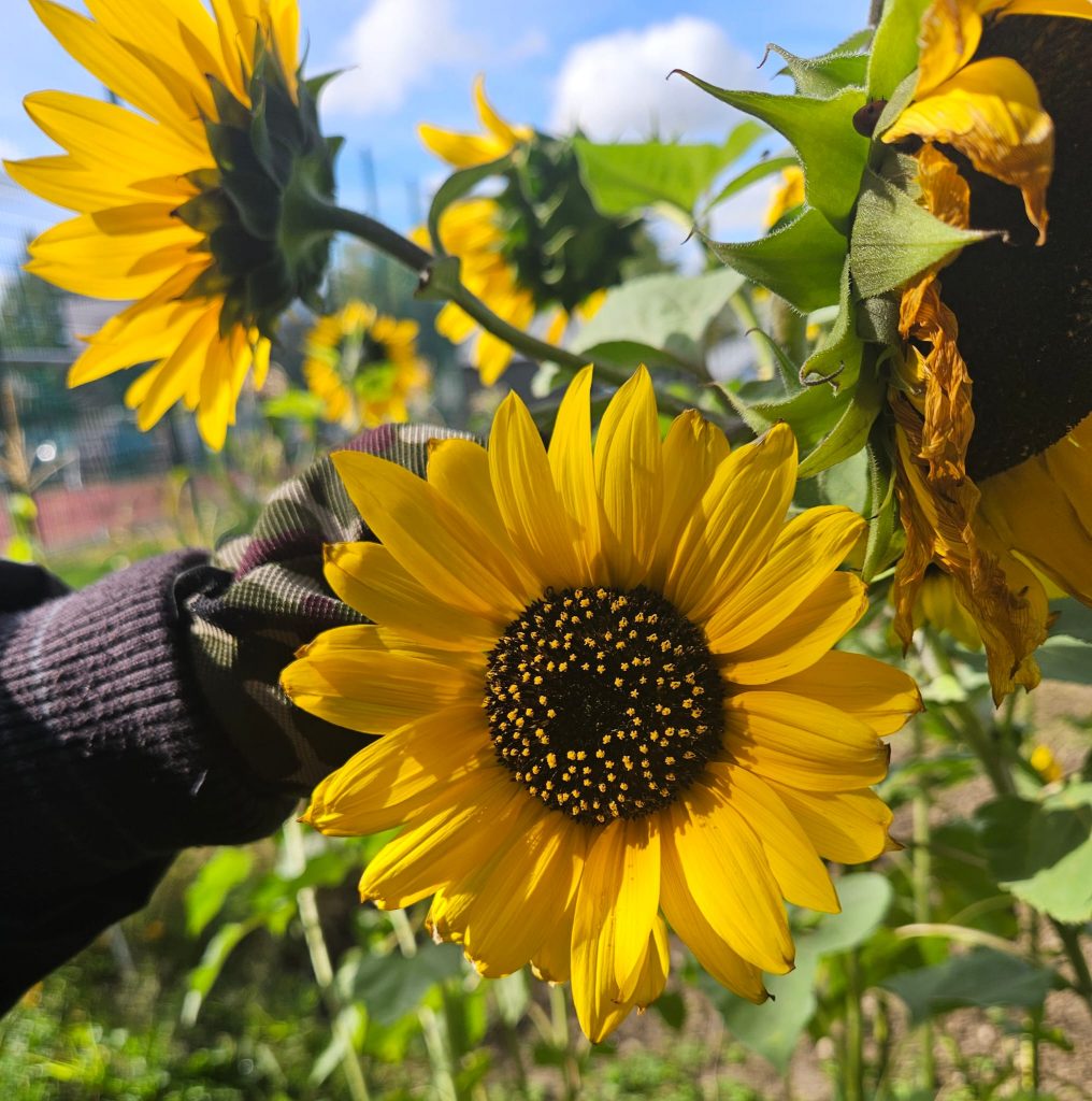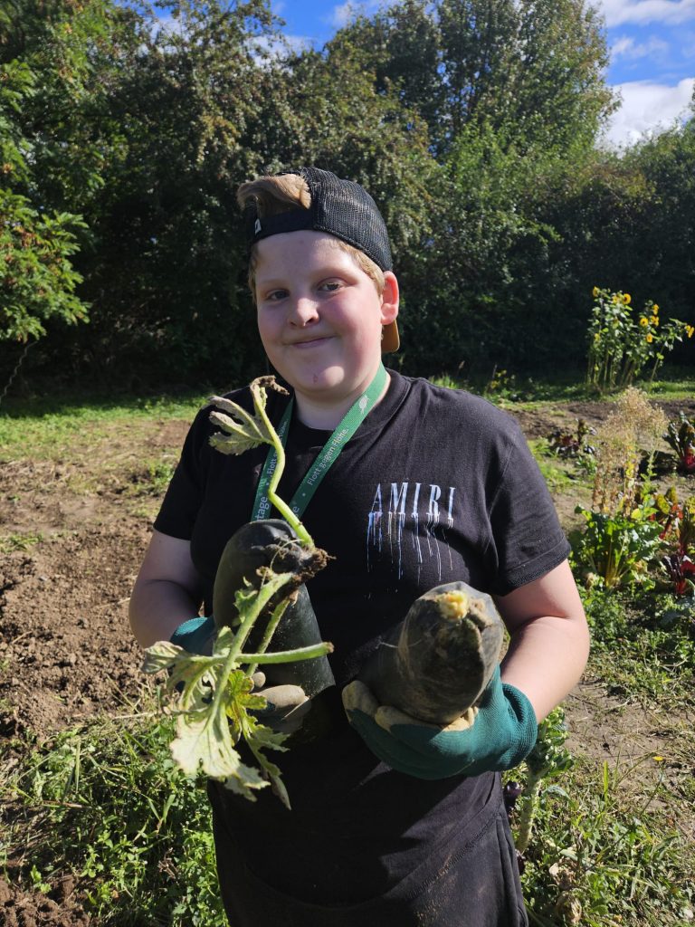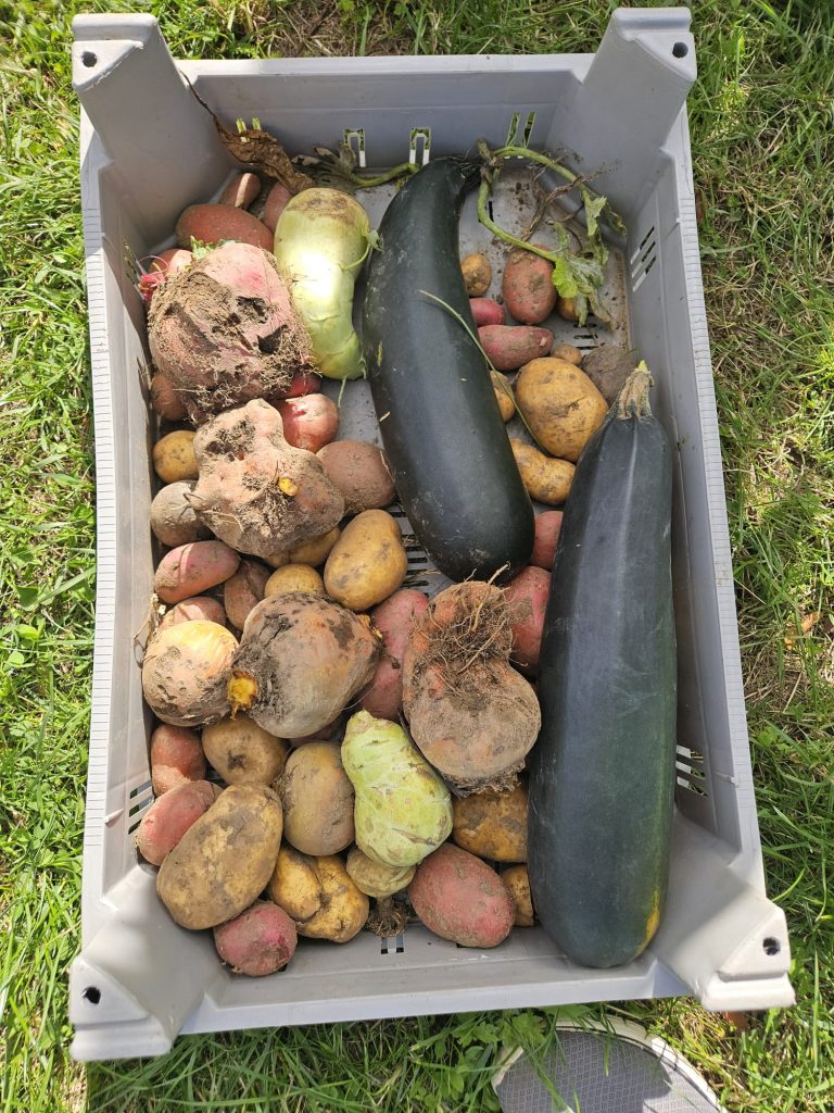 Wir haben Kartoffeln, Zucchini und Mangold geerntet. 🥔🥒🥬 Überall gab es Spannendes zu entdecken: hohe Sonnenblumen 🌻, bunte Hagebutten und – das Highlight – einen Hundertfüßler mit ganz vielen Beinen! 🐛