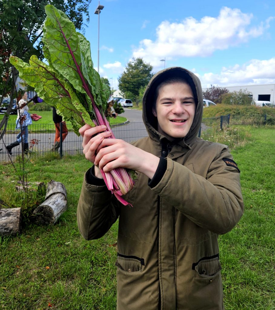 Wir haben in Hauswirtschaft Mangold-Pizza mit Mangold von unserem Schulacker gebacken! Die war richtig lecker!
