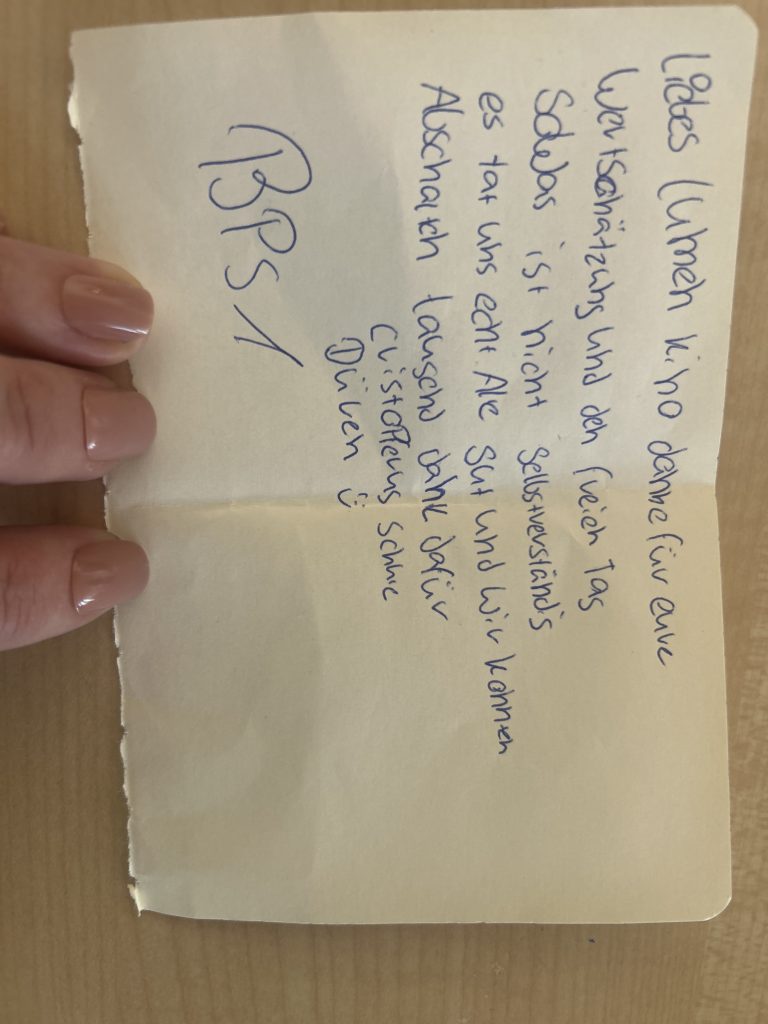 Bis jetzt haben schon viele Menschen in unserer Schule bei der Umfrage mitgemacht. Das ist super. Danke dafür! Es ist auch toll, dass einige Klassen im Unterricht über das Thema gesprochen haben. Es ist spannend zu sehen, wie die Menschen in der Schule über das Thema denken. Wir haben schon angefangen, die Umfrage auszuwerten. Wir zählen dabei die Meinungen. Das ist ganz schön viel Arbeit, aber wir kümmern uns sehr konzentriert darum.
