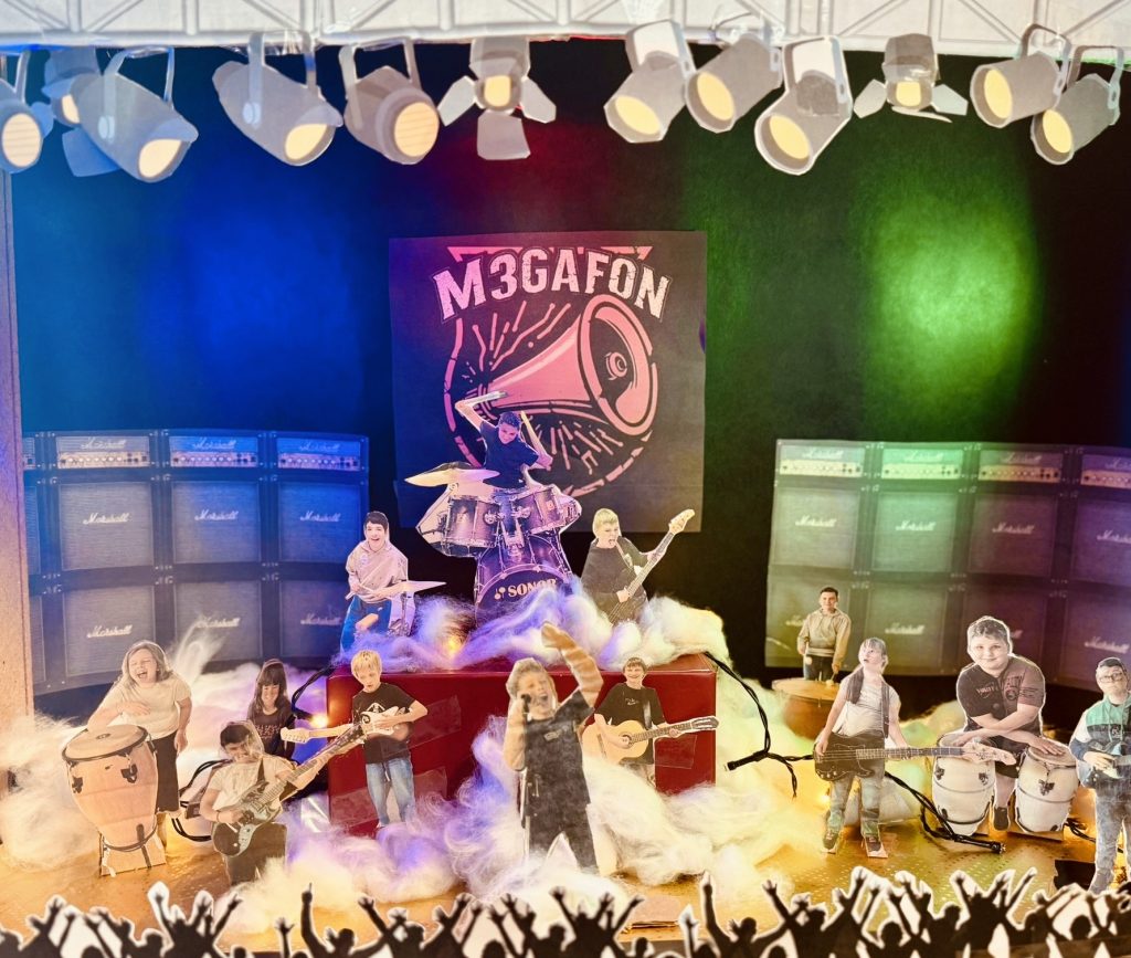Die M3 hat im Kunstunterricht ein Diorama gebastelt. Herausgekommen ist eine supercoole Rockband mit dem Namen M3GAFON! Im Musikunterricht entseht bald die passende Musik dazu. Seid gespannt…