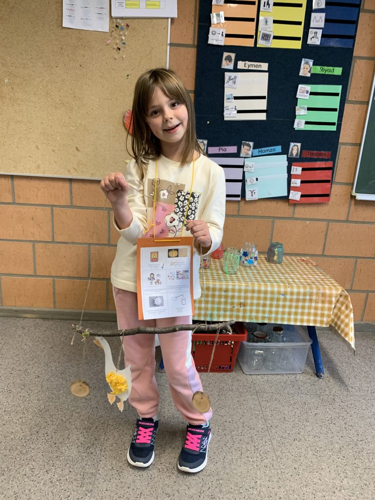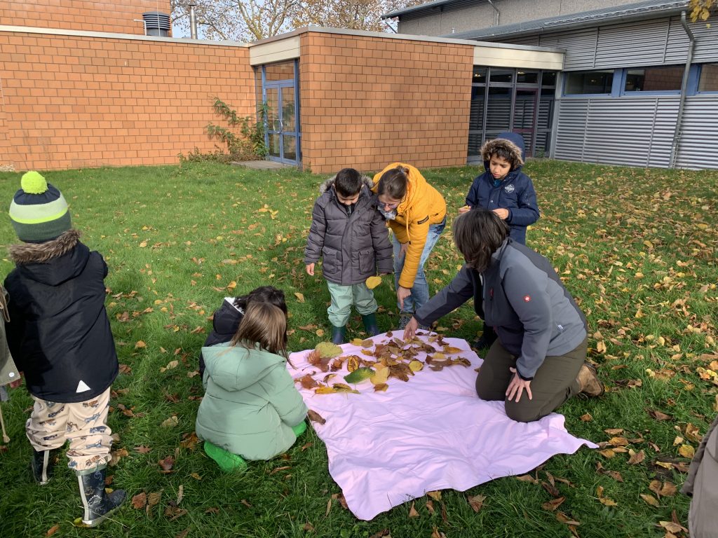 Die V1 durfte an zwei Tagen an einem Naturprojekt teilnehmen. Wir haben die Wiese neben der Schule erkundet. Im tollen Stock- und Blätterhaufen gab es eine Eidechse und viele Käfer, wir haben den Paarungstanz der Feuerwanzen ausprobiert, das war lustig. Wir haben Pilze, Hagebutten und Blumen gefunden und wissen jetzt wie eine Mäusebussard schreit.