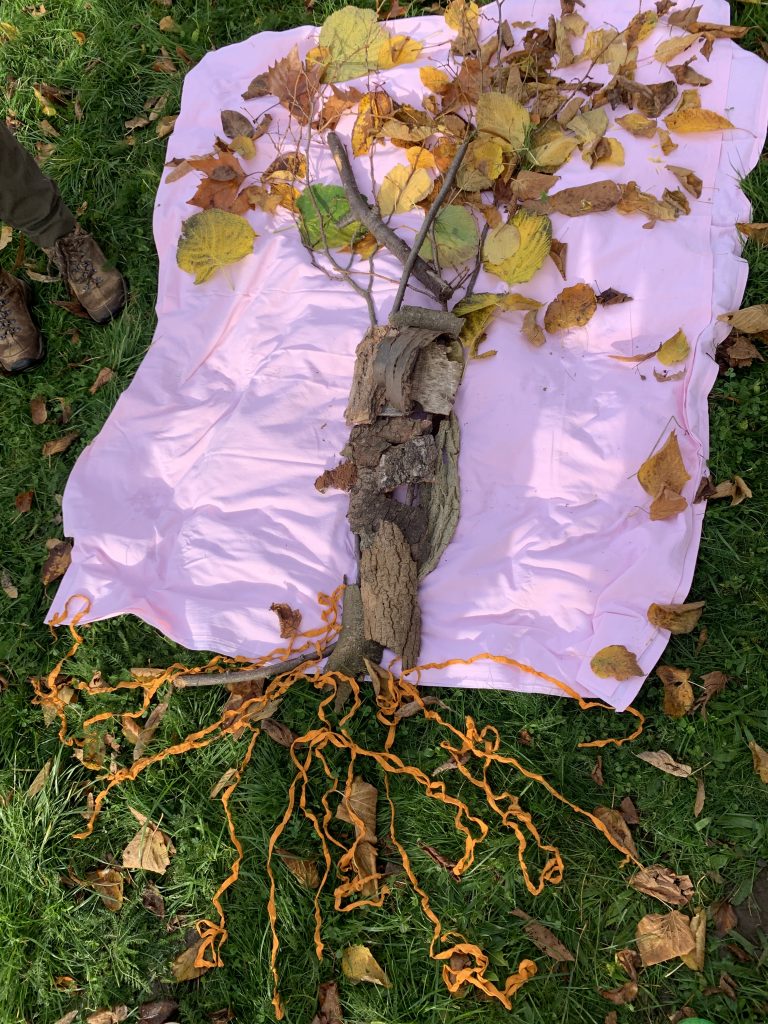 Wir haben beim 2. Mal die Bestandteile von Bäumen kennen gelernt, gesucht, ein „Bild“ daraus erstellt und eine Raupe gefunden.