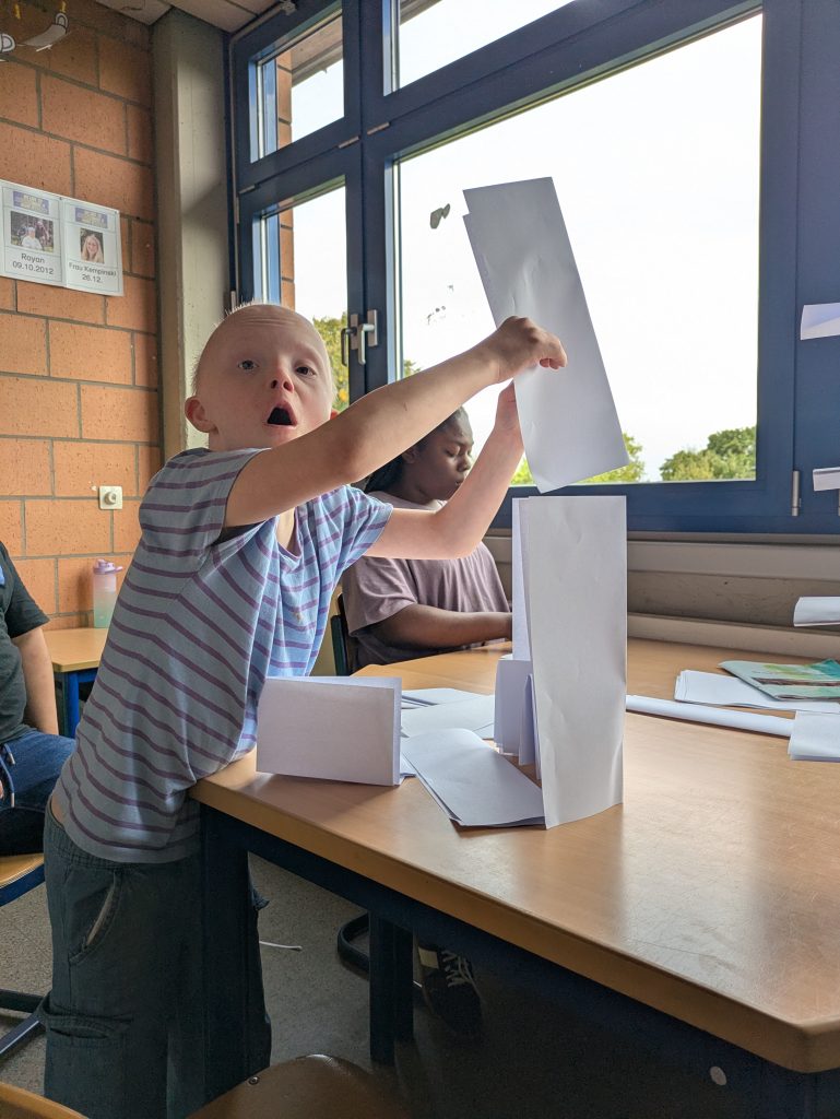Wir haben Brötchen für die Schule geschmiert und 156 Euro verdient. Das Geld haben wir an das Tierheim in Düren gespendet. Dafür holt das Tierheim Futter und Spielzeuge für die Tiere.